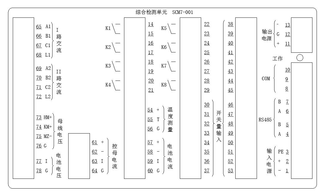 綜合檢測(cè)單元是對(duì)系統(tǒng)交、直流檢測(cè)及對(duì)整流模塊進(jìn)行控制的一種設(shè)備。內(nèi)部使用CPU控制,采取標(biāo)準(zhǔn)MODBUS通信協(xié)議,主要用于測(cè)量三相交流電壓、直流電壓、直流電流、開關(guān)量輸入檢測(cè)、繼電器輸出控制和直流絕緣檢測(cè)。 可根據(jù)要求設(shè)計(jì)不同的通訊協(xié)議!!!