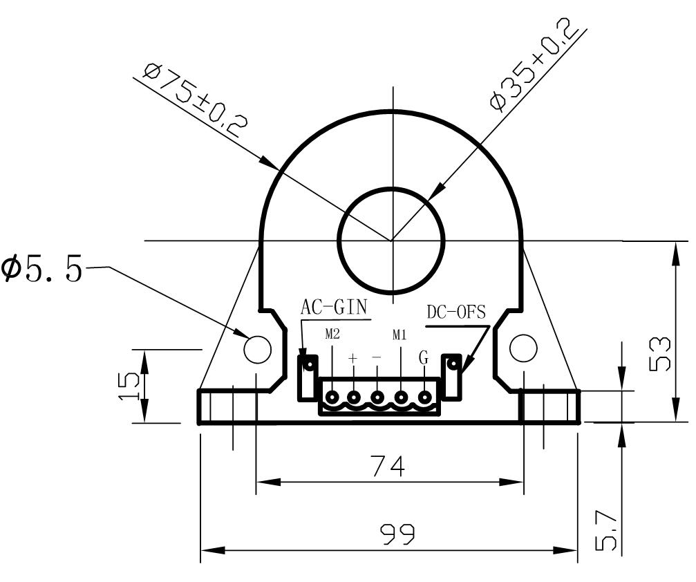 1.SCD-AC Series sensor is AC/DC leakagecurrent sensor adapt non-contact measurement, it can measure small AC, DCcurrent MA level’s isolation in perforation measurement. M2 measure AC output,M1 measure DC output. 2.Zero position output of the sensor output can beadjusted according to user needs.