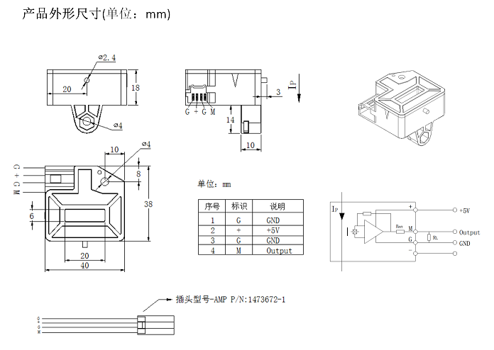 4. Output wiring plug: AMP P/N: 1473672-1;